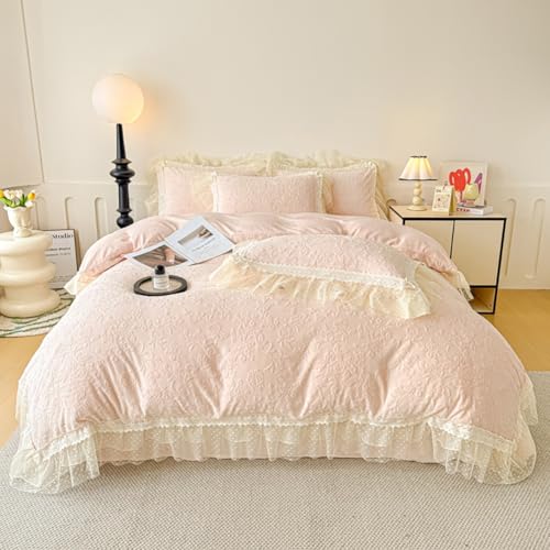 Auybuig 布団カバーセット 3点 4点 秋冬 暖かい 厚手 掛け布団 枕 フラットシーツ フリル フローラル柄 お姫様 可愛い 姫系 寝室 洗える 肌触り ふんわり 保温 ポリエステル綿 (シングル,ピンク)の高価買取ITEM