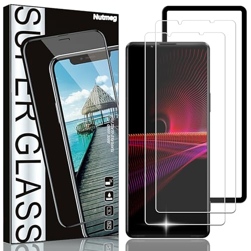 NutmegのXperia 1 III用ガラスフィルムは、旭硝子素材で強化された9H硬度を持ち、高透過率・高光沢を実現。気泡なしで簡単に貼り付け可能、撥油性、耐衝撃、指紋防止機能付きの2枚セットです。
