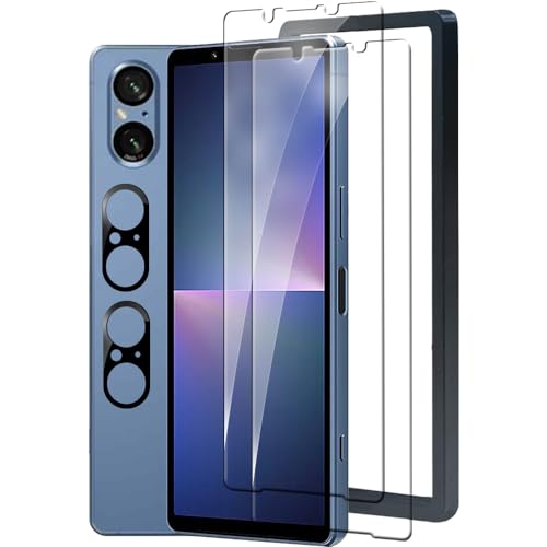 Xperia 5V用のガラスフィルムとカメラフィルム(2+2枚セット)。硬度9Hの旭硝子製で超耐久性。撥水撥油、指紋防止、飛散防止処理済。ケースに干渉せず、指紋認証も鋭敏に反応。