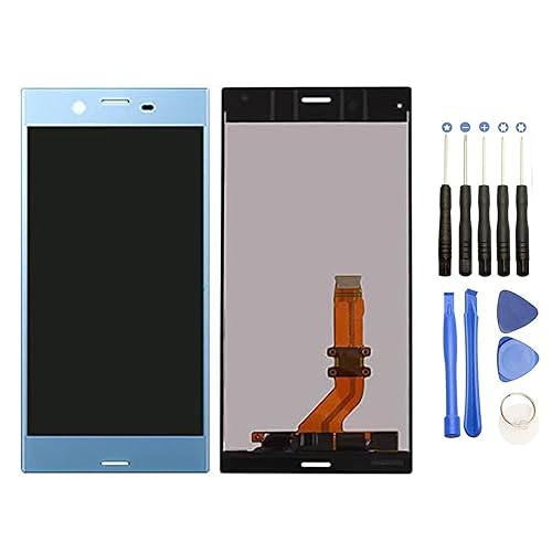 DYGCGOのXperia XZs 602SO/ SO-03J/ SOV35用フロントパネル。LCDタッチパネルと液晶パネルが含まれ、修理工具セットが付属しています。カラーはブルーです。
