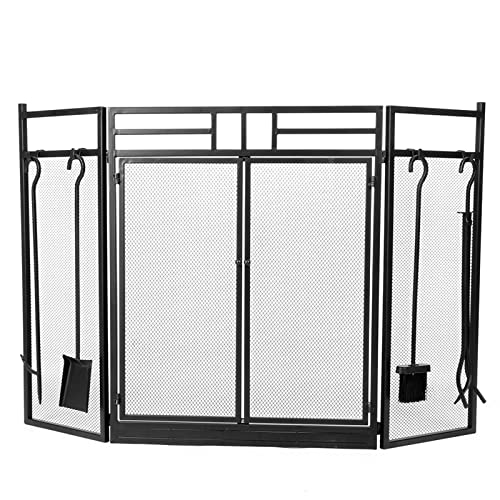 暖炉スクリーンガード、錬鉄製でスチールフレーム。サイズは49.5×35.6インチ。4パネルデザインで、暖かく安全な空間を提供します。