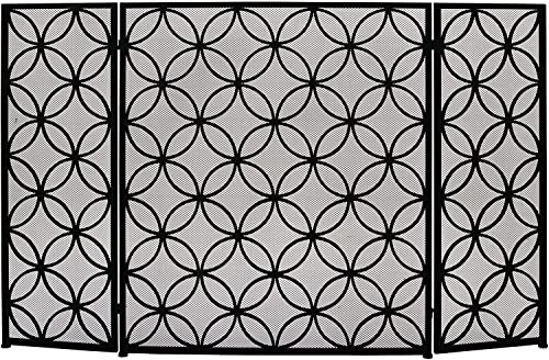 暖炉スクリーンガード、現代的なトレリスパターンの3パネル金属製デザイン。サイズは30インチH x 48インチWで、フラット暖炉に適しています。