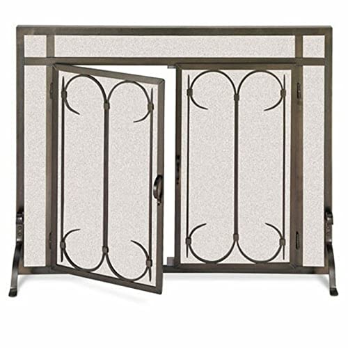 暖炉スクリーンガード、暖炉スクリーン ピルグリム アイアンゲート 暖炉スクリーン ドア付き – バーニッシュドブラック – 幅44インチ x 高さ33インチ 暖炉スクリーン フラット暖炉の製品情報