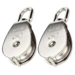 ステンレス製SUS304プーリー、耐荷重に優れた滑車ローププーリーです。クライミングや貨物輸送に最適なスイベル式で耐久性も抜群。2個セットでの提供。