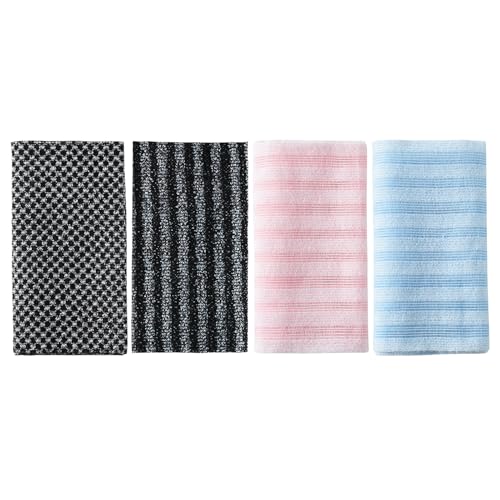 ボディスクラブタオル4枚セット。両面使用可能なウォッシュクロスで、背中や全身の角質ケアに最適。旅行やスパでのパーソナルケアに最適なアイテムです。