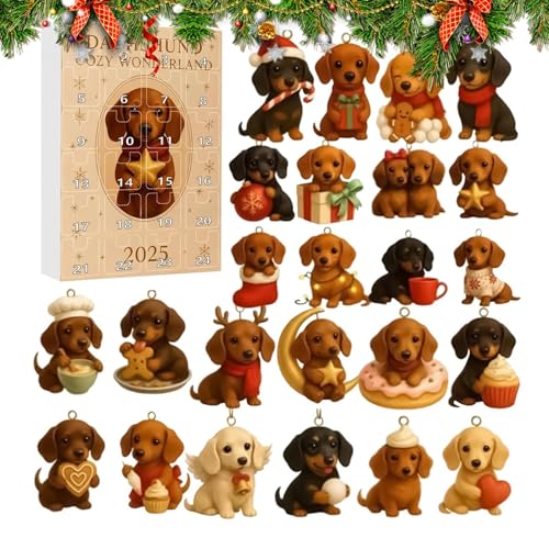 クリスマスカウントダウン用のドッグ2Dアクリルキーホルダー。24日間のフィギュアで、季節のホリデーに最適。子供やティーン、大人にお勧め!