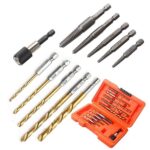 逆タップ ネジ抽出器セットは、高速度鋼製の11ピースドリルセットで、切れたネジを効果的に抜き取ります。頑丈仕様で収納ケース付き、ビットハンドルもあり電動工具にも対応しています。