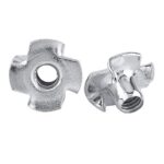 爪付きTナット M5サイズ、家具用やロッククライミングに最適。四爪デザインで安定性抜群。亜鉛メッキ仕上げ、シルバートーン、50個入り。木製キャビネットの保持用に便利です。