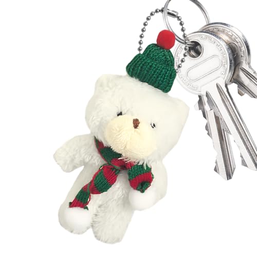 ぬいぐるみペンダントは、マフラーと帽子をした柔らかいクマのフィギュアです。キーチェーンやバッグチャームとして子供たちに人気の季節のオーナメントです。
