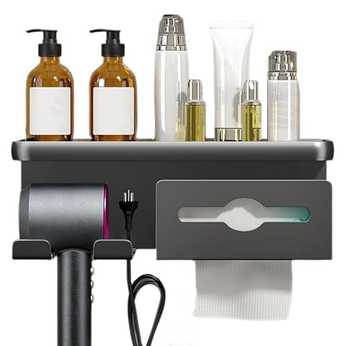 壁掛けヘアドライヤーホルダーは、ヘアドライヤーを整理する3-in-1ラック。バスルームや寝室で、ヘアケア、ティッシュ、化粧品を収納。空間を有効活用し、スタイリングを快適にします。