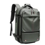 旅行用掃除機バックパック、60L拡張可能なコンピューターコンパートメント付き。オックスフォード布、防水、ドライウェットセパレーション機能。ビジネス用、アーミーグリーン。