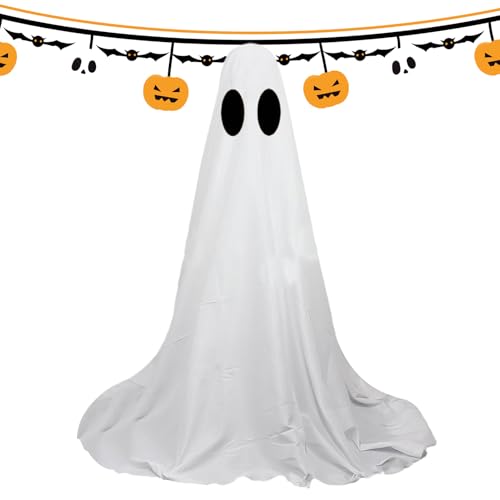 Rjfba 屋外用ゴースト装飾,屋外用ゴースト装飾,ビスタプリント大きなハロウィーンの庭の装飾ゴースト – 通路用のLEDストリングライトが付いている白い布のゴーストポーチの装飾の高価買取