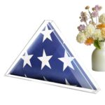 退役軍人の旗を美しく展示できるクリアアクリルショーケース。三角形のメモリアルボックスで、耐久性のあるエレガントなデザイン。