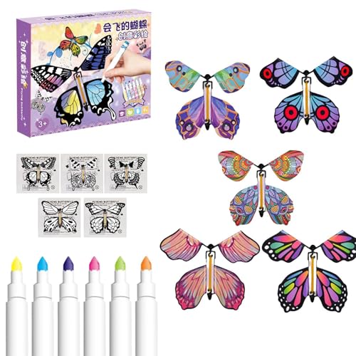 塗装済みクラフトカードセットのフライングバタフライおもちゃ。ゼンマイ式で手作りの蝶が飛び出す楽しいカード。カラフルなブックマークやグリーティングカードにも最適。