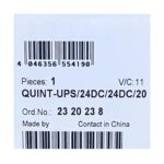 QUINT-UPS/24DC/24DC/20 2320238は、24V/20Aの無停電電源装置です。電源供給の安定性を確保し、設備の稼働を継続的にサポートします。コンパクトな設計で、柔軟な取り付けが可能です。