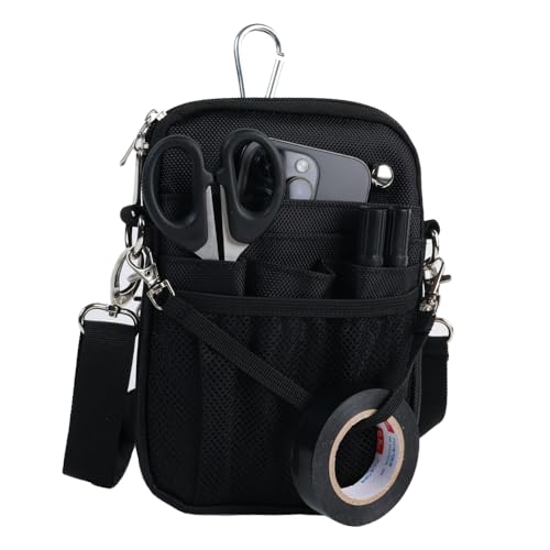 多機能ウエストポーチ、SSサイズのナースポーチ・ウエストバッグ。11ポケット、ダブルジッパーで大容量。3wayショルダー可能、撥水・防傷加工のブラック。