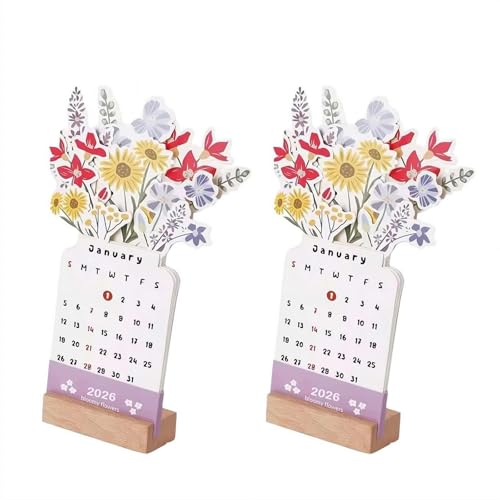 インスピレーションあふれる2026年卓上カレンダー。木製ベース付きの花瓶型、デスクを彩るデザイン。同僚への贈り物にも最適。2個セットで、職場に華やかさをプラスします。