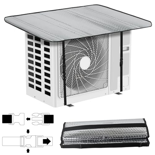 DEWELエアコン室外機遮熱シートは、熱を反射するアルミフィルムを使用した高機能カバーです。3層の空気層を持ち、厚手設計で断熱効果抜群。雨や汚れから守り、節電対策にも最適。サイズは85*40cm、固定ベルト付きで取り付け簡単。