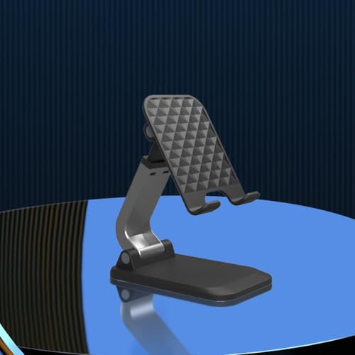 回転可能なデスク用携帯電話スタンド。高さと角度調節可、ほとんどのスマートフォンに対応。モデルQ7-L、カラーはブラック。