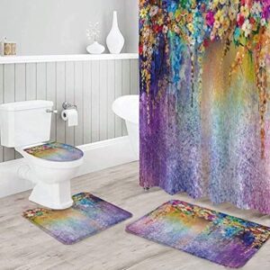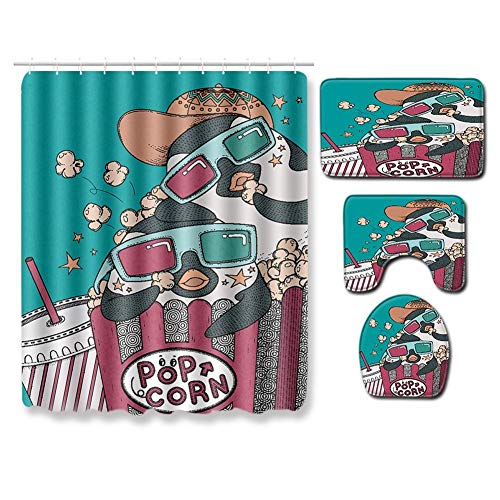 シャワーカーテン4点セットは、幾何学的デザインのトイレカバーやノンスリップバスマットを含む、柔らかなクッション性のあるインテリアアイテムです。小窓目隠しや防水加工が施されており、おしゃれで機能的です。