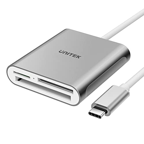 Unitek USB C マルチカードリーダー 3スロット搭載 SD・TF/microSD・コンパクトフラッシュ/CFカードリーダー USB Cデバイス用 3 枚のカードを同時に読み取る USB3.0 メモリカード アルミ合金 3in1外付けカードリーダー 高耐久 高速 データ読取 データ移行 コンパクト グレーの高価買取