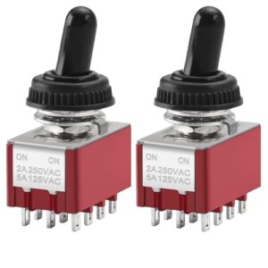 Heschen 小型トグルスイッチ, MTS-402, ON-ON, 4PDT, 12ピン, 2A 250V, 防水カバー付き, 2個入り