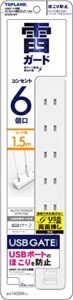 T-U08-3A2C15WH ホワイト 延長コード 電源タップ 1.5m コンセント 3口 Type-C×1 USB-A×2 雷ガード ほこり