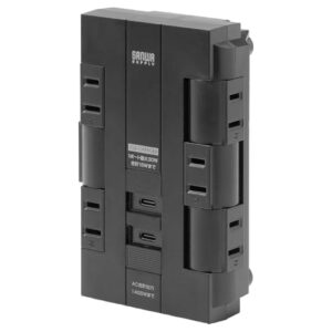 サンワダイレクト 電源タップ 6個口 USB-C付き PD対応 2ポート最大30W 回転式 分岐 集中スイッチ付 コンセント タップ ブラック 700-TAP046CBK