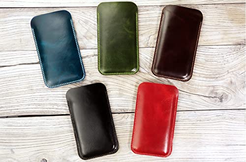 / ハンドメイド アップルアイフォン用 レザースリーブケース カラーレザー オイルタンニンなめし牛革 セルフォンホルダー 携帯電話 スマホ スマートフォン用 カバーケース iPhone 12 13 mini 16 15 14 11 Pro Max X XR XS Max対応 Y03-IP0LS (ブルー, iPhone 16 Pro Max)