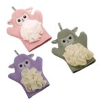 SKISUNOの3個猿キャラクター柄バスグローブは、シャ用洗浄手袋として入浴時のボディケアに最適。かわいいデザインで、実用性も兼ね備えた浴室アクセサリーです。
