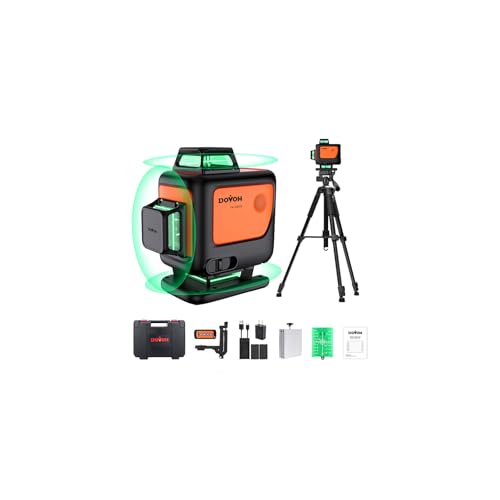 DOVOHの16ライングリーンレーザー墨出し器は、三脚付きで360°自動整準機能を搭載。ダブルバッテリー、リモコン、受光器対応、耐衝撃工具箱入り。建築や床タイル、天井工事に最適です。