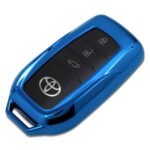 YOURS(ユアーズ)のTPUスマートキーケースは、トヨタ車専用で、ブルーのメッキ風デザインです。クラウン、スポーツ、ノア、ヴォクシー、ランクル250・300、シエンタに対応。カスタムパーツやアクセサリーとして最適です。