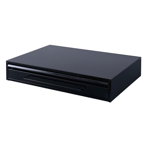 be worth styleのキッチン収納ラック、幅55×奥行40×高さ10.1cmのスリムデザイン。家電下や隙間に最適で、引き出しとスライドテーブル付き。スタイリッシュなブラックカラーが魅力です。