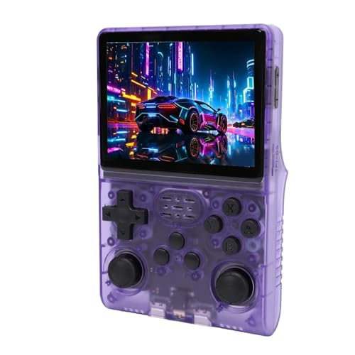 レトロハンドヘルドゲームコンソール、シングルプレイヤーゲーム用ポータブルビデオゲームコンソール3.5インチIPS 640×480スクリーン、30000ゲーム内蔵45エミュレータ (透明な紫色)の製品情報