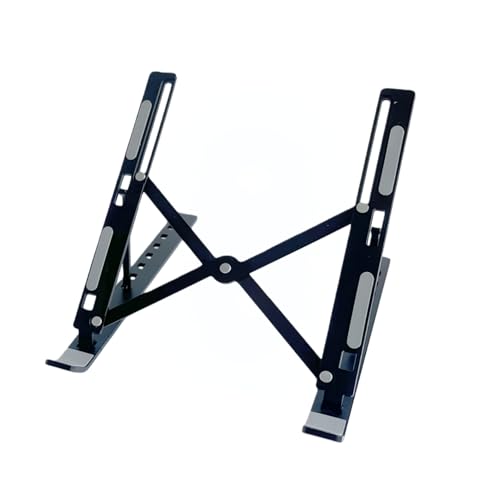 折りたたみ式ノートパソコンスタンドは、金属/アルミニウム合金製で、10段階の高さ調節と角度調整が可能。放熱性が向上し、滑り止め付きでタブレットや書籍にも対応。色はブラック。