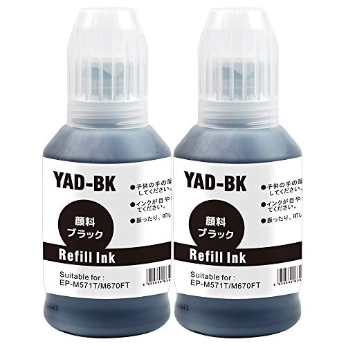 YAD(PGBK/顔料ブラック)互換インクボトル2本セット。容量140ml×2本で、純正インクと併用可能。対応機種は複数あり、最新のSTAR JET製です。