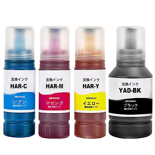 YAD/HAR 4色セット互換インクカートリッジは、エプソン対応で、ブラック(YAD-BK)とカラー(HAR-C, HAR-M, HAR-Y)が含まれています。対応型番はEW-M571T, EW-M571TW, EW-M630TB, EW-M630TW, EW-M670FT, EW-M670FTWです。