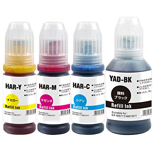 EPSONエプソン用の互換インクボトル4色セット。顔料ブラック(PGBK)とC/M/Yの増量版。保証1年。対応機種多数。純正と併用可能。