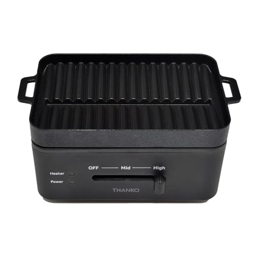 THANKOの卓上おひとりさま焼き肉ソログリルYAKUNKSBKは、一人用のコンパクトホットプレートです。減煙・少煙設計で、お手入れも簡単。高火力仕様で、狭いスペースでも手軽に焼肉が楽しめます。