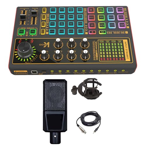 Docoolerサウンドミキサーボードは、ストリーミング向けに多様なサウンドエフェクトを搭載し、LEDライトやボイスチェンジャー機能も備えたポッドキャスト機器です。
