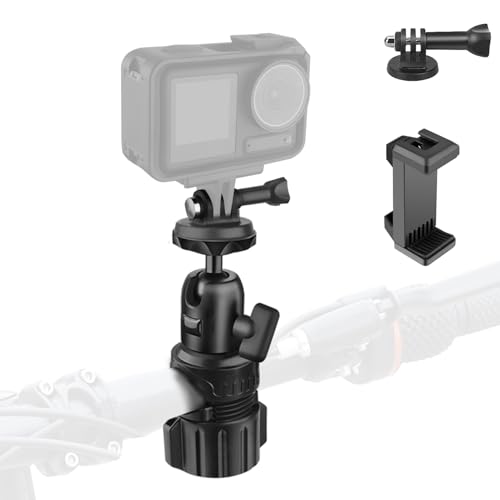 カメラマウントは、バイクや自転車用に設計されたアルミ合金製のハンドルマウントです。1/4ネジ付きで、gopro用アダプターも付属。360°角度調整可能で、直径13mm-25mmのポールに対応。