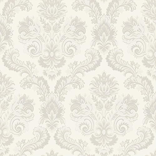 壁紙屋本舗の輸入壁紙は、のりなしで壁紙の上から張れます。破れにくいダマスクデザイン、エレガントでフェミニンな印象。色はパールホワイト、クラシカルでモダンな質感チェック。A4サイズ28820号。