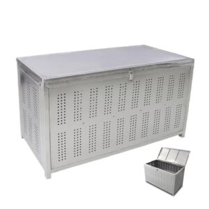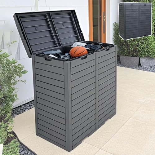 Simpoluの230L大型ゴミ箱収納庫は、樹脂製で頑丈な戸外収納庫です。ふた付きで簡単に組み立てられ、ガーデニングや野良猫よけに最適です。