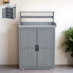 Simopuluの木製収納庫は、観音扉デザインのヨーロッパ風ガーデニング用品収納です。大型で頑丈な構造、屋外やベランダに適したスペース効率の高い物置です。