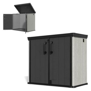 Simpoluの屋外物置は、180x121x180cmのサイズで2400Lの容量を持ち、スチール製の可動棚とロック付き。温室機能付きで防さび・防水設計。ガーデニングや庭の収納に最適な大型収納庫です。