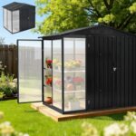 Simpolu 【2箱梱包】 【温室付き】 物置 屋外 W180*D121*H180cm 2400L容量 スチール 可動棚 ロック付き 倉庫 戸外収納庫 物置き 大型 収納庫 防さび ベランダ 防水 ドア 屋外収納 ガーデニング 庭 (ブラック) 高価買取中