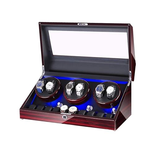 この時計ワインダーは6個と10個の収納が可能で、LEDライト付き。ウッドシェルピアノペイントエクステリアに加え、高品質なレザーインテリアを採用。サイレントモーターにより静かな運転を実現。