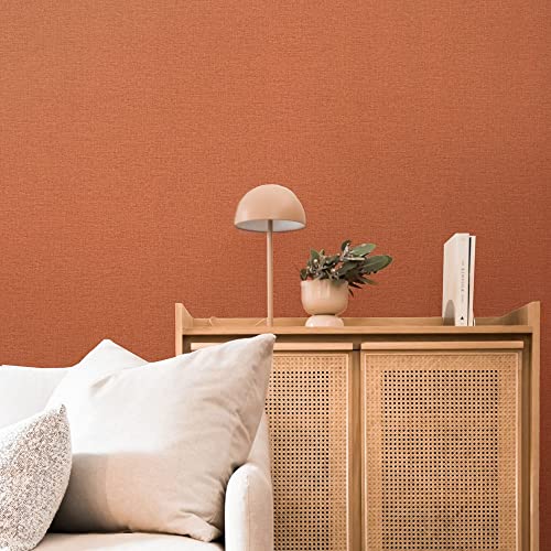 壁紙屋本舗 輸入壁紙 のり付き クロス 53cm×10m 壁紙の上から張る 破れにくい 織物調 赤 茶 厚手 透けにくい 天井 テラコッタ 449051 【受注生産品キャンセル不可】