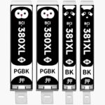 キヤノン用381/380 XL黒互換インク。対応機種: TS8430/8330/8230/8130等。大容量4本マルチパック、取扱説明書付き、残量表示対応。