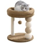 U-YocanPetのキャットタワーは高さ45cmのミニタイプで、低めの設計が特徴。省スペースで、麻紐爪とぎやボール型おもちゃが付属。シンプルでかわいいデザイン、組み立ても簡単です。